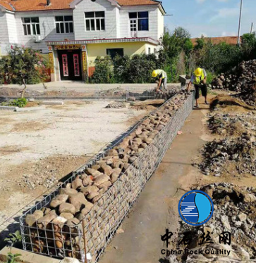 箱型石籠由大規(guī)格六角網(wǎng)聯(lián)結(jié)而成,施工中只需將石塊裝入籠中封口即可。
